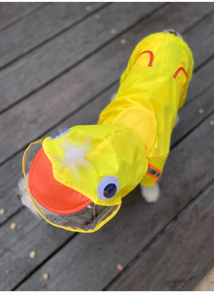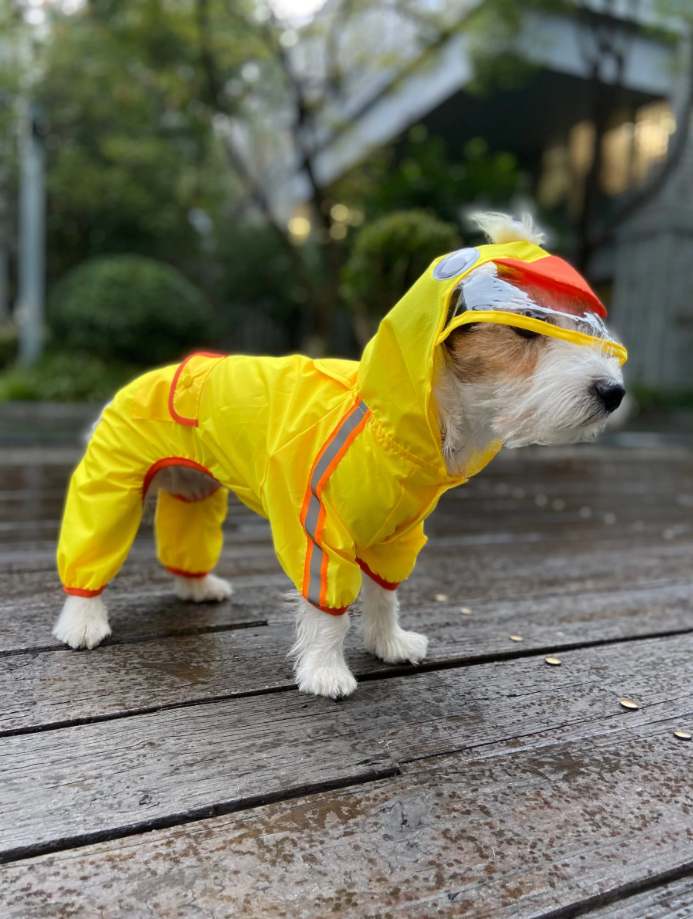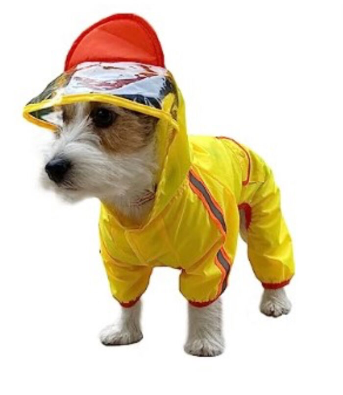 - COMPLETE PROTECTION: Transparent hooded design for complete head protection and visibility. The four-legged elastic cuffs coverings prevent your dog from getting wet and splashed by the rain.