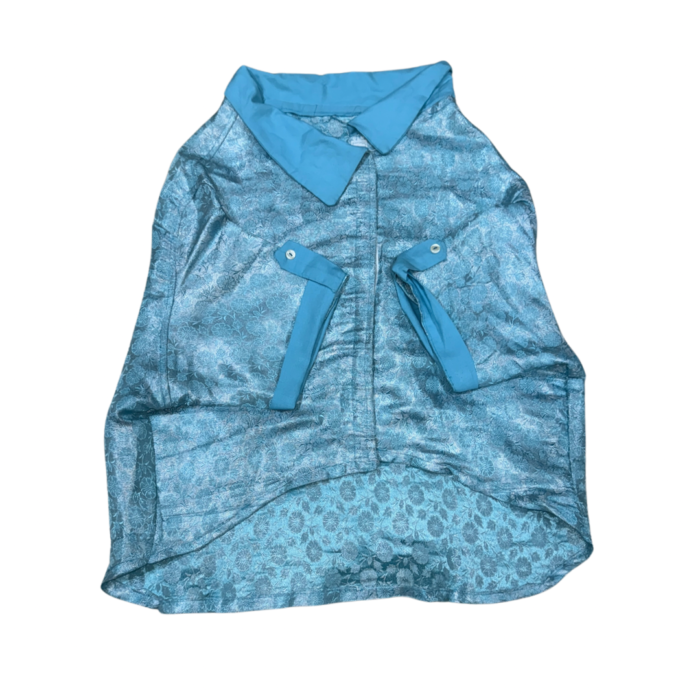 This elegant blue designer kurta for dogs is the perfect blend of style and comfort. Made from premium, soft fabric, it features intricate embroidery along the neckline and hem, adding a sophisticated touch. The kurta is tailored for a perfect fit, ensuring your pup feels both fashionable and cozy. Its vibrant blue color pops beautifully, making your dog the center of attention at any event or gathering. Ideal for special occasions like weddings, parties, or festive celebrations, this kurta is designed to be both breathable and easy to wear, with a simple yet chic button closure for convenience. Your furry friend will look absolutely dashing in this exquisite outfit!