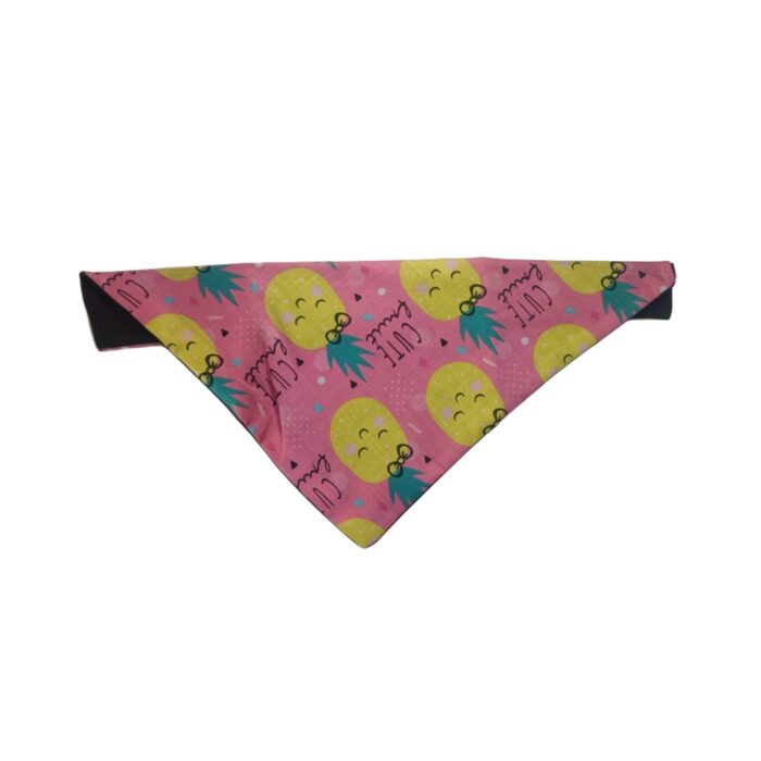 1. **Tropical Print**: The bandana features a cheerful pineapple print, which brings a tropical and summery vibe. The bright and bold design adds a fun and playful element to your dog’s outfit.