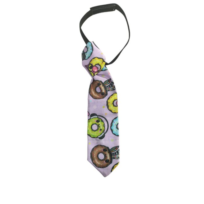 Introducing Klubk9’s delightful tie in a charming light purple hue adorned with adorable donut prints, perfect for your beloved furry companions! Crafted with care and style, this accessory is designed to add a touch of whimsy to your pet’s wardrobe.
