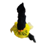 The skirt is adorned with a cute mustard-colored bow belt that adds an extra pop of color and elegance to the overall design. This stylish bow provides a sophisticated touch while still keeping things fun and lighthearted. Whether it’s a special occasion or just a casual outing, this tutu skirt will make your dog feel like a true diva.