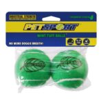 Flavored with delicious mint, these balls will help freshen your dog’s breath. They are non-toxic and made from non-abrasive polyester which will not wear down your pet’s teeth. They are also pressure-less and will not cave in when your dog chomps down on them. Mint balls are heavy-duty tennis balls made especially for dogs and flavored with natural spearmint. Tastes great and neutralizes dog breath.