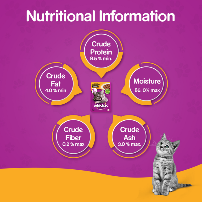 1. Whiskas® Tuna in Jelly is a complete and balanced meal by itself2. Give your pet clean drinking water with every meal3. Serve on a daily basis, as per the cat’s body weight4. Serve dry kitten food and wet kitten food in different bowls5. It is recommended to feed twice a day6.In case your pet does not enjoy Whiskas® kitten food, continue with the mixture of Whiskas® kitten food and current food for a few more days