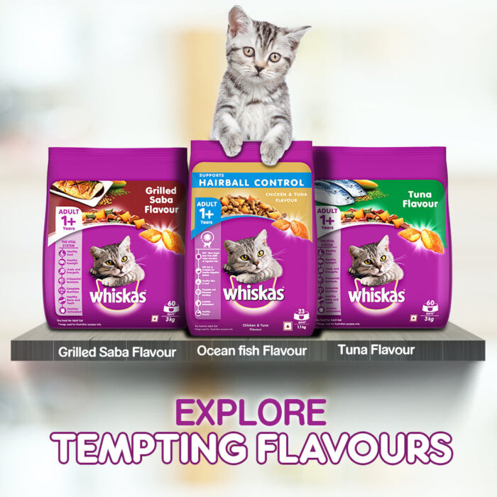 Whiskas® Skin and Coat Dry Cat Food – is a complete and balanced meal for a cat’s vital system that strengthens it from the inside out. Reduce hair fall and enhance your cat’s aesthetic beauty with WHISKAS® Skin and Coat. Their new lush fur and healthy skin will become a point of admiration for cat lovers.