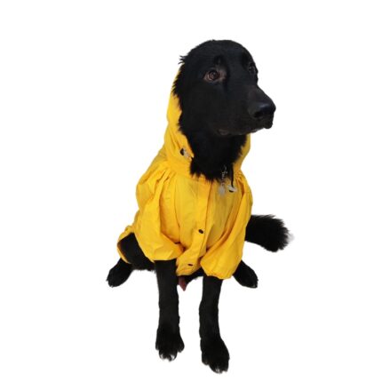 Puppy Love Dog Raincoat – Superman Print, Yellow, Four Legs Let your pup take on rainy days like a superhero